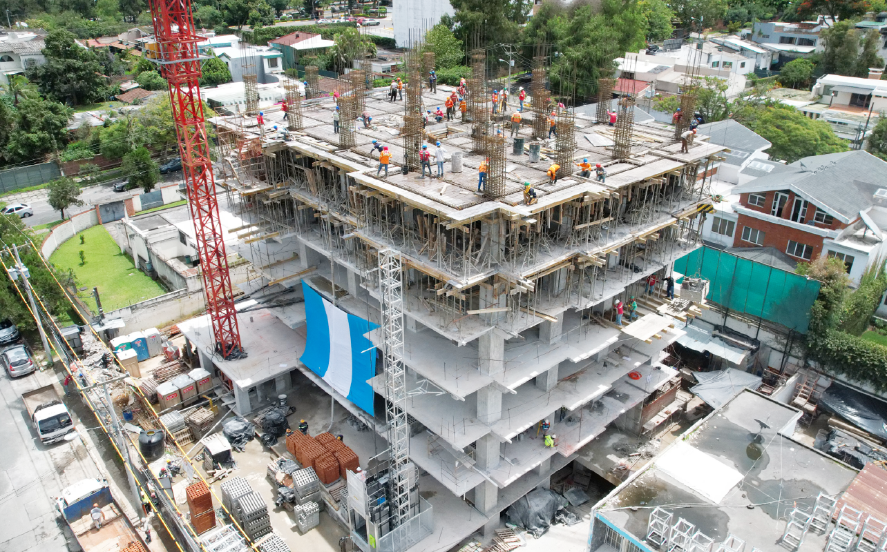 Datos: Año de construcción: 2023 Ubicación: 21 avenida "A" 00-88 zona 15, Vista Hermosa II, Ciudad de Guatemala Cliente: Aksara Sector: Vivienda Metros cuadrados: +15,000m2Descripción: Una construcción de apartamentos de 15 niveles y 6.5 sótanos