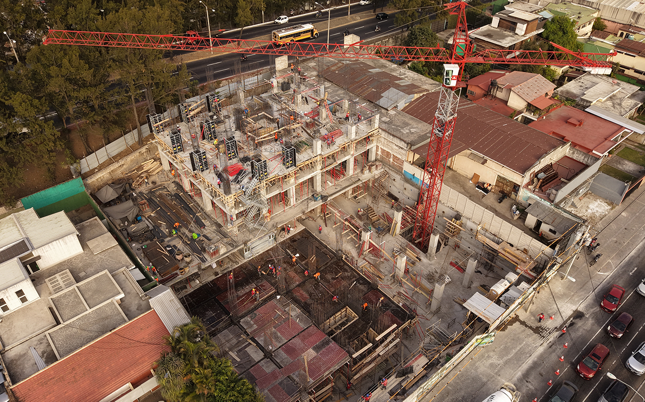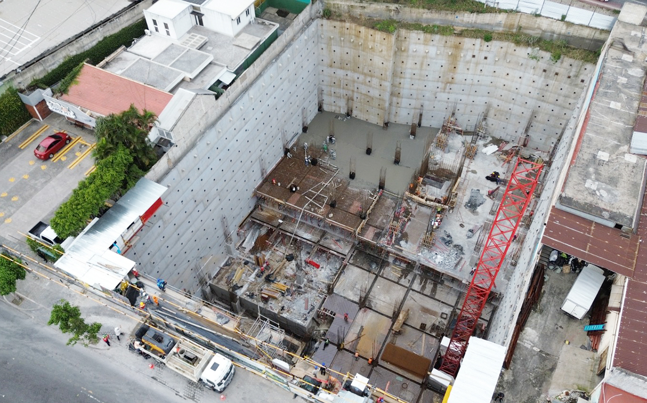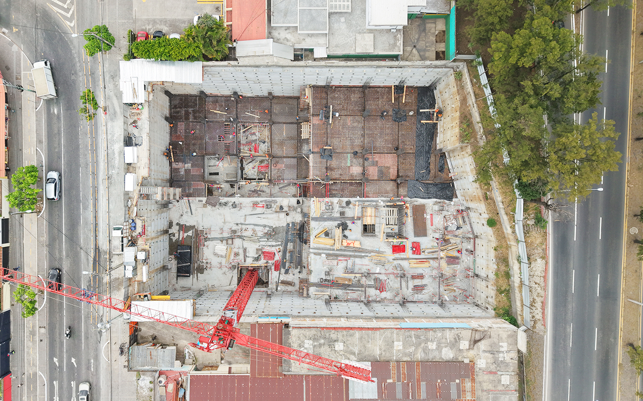 Datos: Nombre: VICINIAAño: 2024Ubicación: El Carmen, zona 12 ciudad de GuatemalaCliente: MilésimoSector: ViviendaMetros cuadrados construidos: 35,170.54 m²Descripción: Obra grisDescripción: Estructura de concreto, 7 sótanos y 23 niveles.